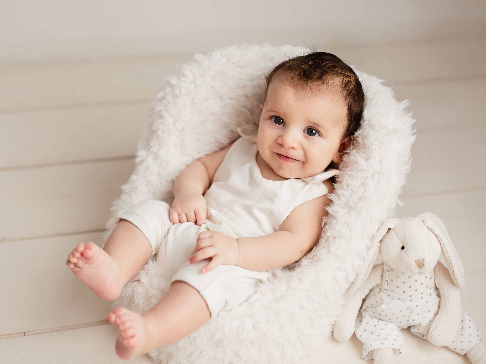Quando il tuo piccolo impara a stare seduto da solo, è il momento perfetto per il servizio Sitters. Scatti spontanei e naturali, con giochi, peluches e accessori studiati per stimolare la sua curiosità.